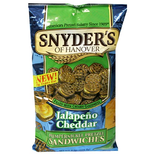 Snyder's of Hanover Jalapeno Cheddar Pumpernickel Pretzel Sandwiches, 8-Ounce Packages (Pack of 12) Reviews