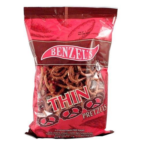"Benzel's Thin Pretzel Twists are a great cholesterol-free snack. Net wt. 8oz. 12 bags per case." Case Pack 12 Do to safety reasons, food may not be returned for any reason. All food sales are final